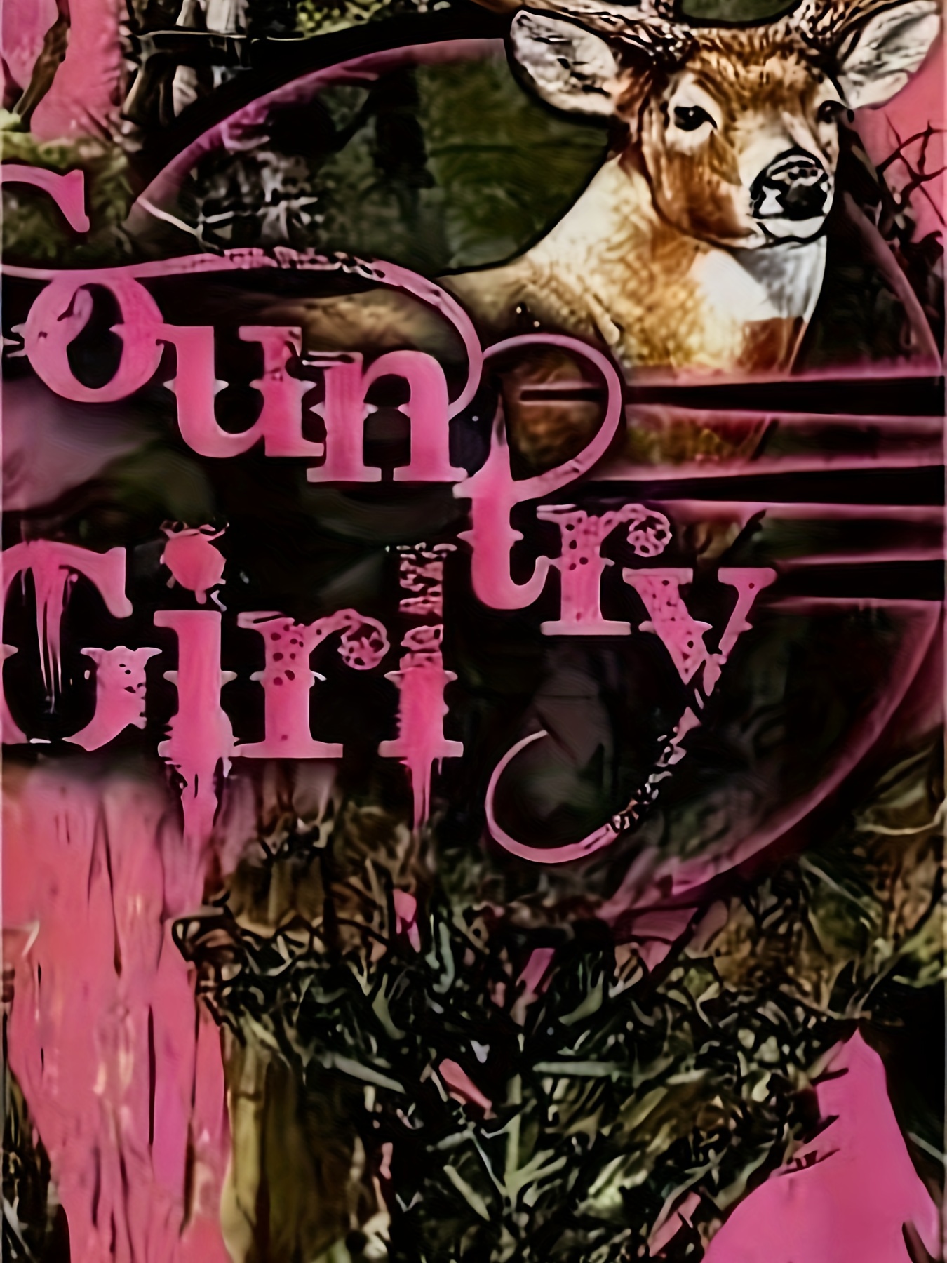 Men'S 3D Deer Print Hooded Jacket with Pink Camo & Country Girl Lettering - Long Sleeve Casual Hunting & Outdoor Hoodie, Adjustable Drawstring Pocket, Spring/Fall Camouflage Coat for Daily Wear (Regular Fit, Deer Stag Design), Plus Size