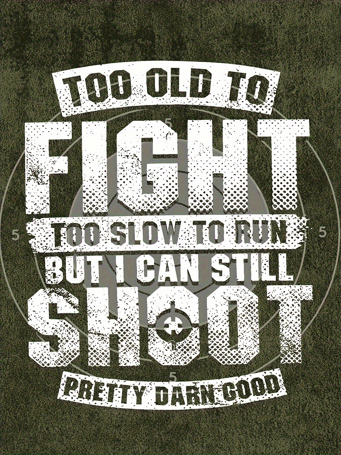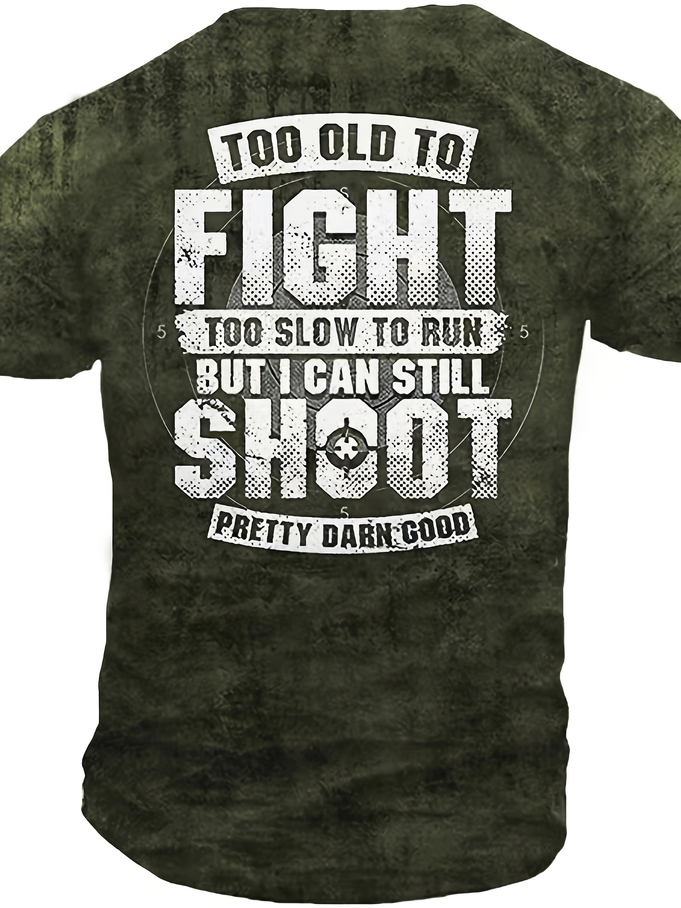 Men's Bold Graphic T-Shirt - Funny Shooting Sports Saying Back Print - Dark Olive Green Crew Neck Tee - Stretch Fabric Casual Shirt for Everyday & Weekend Outfits - Machine Washable Adult Sizes, Relaxed Style, Statement Design, Comfortable Fit, Short Sleeve Top, Humor Lovers, PLUS SIZE