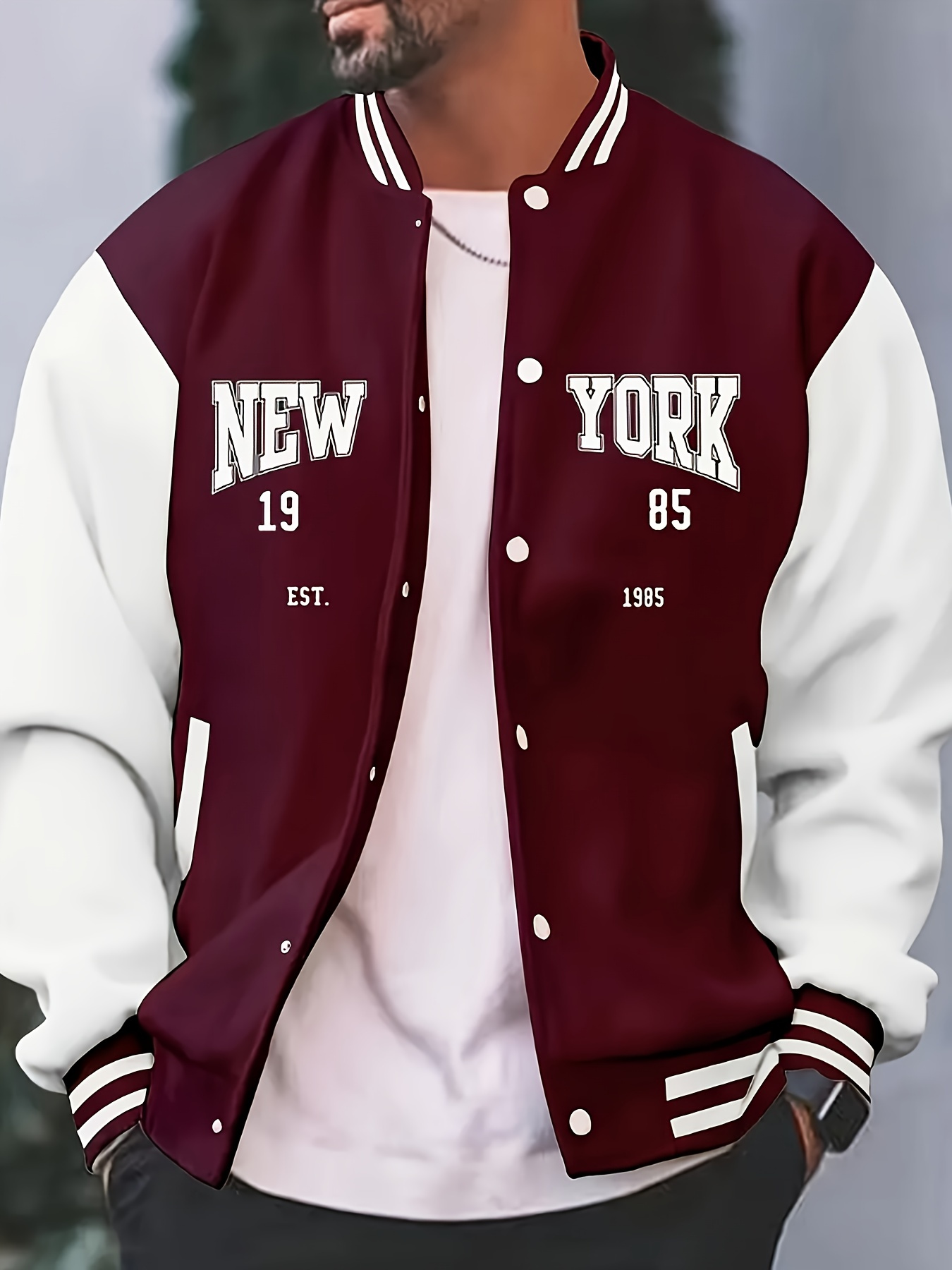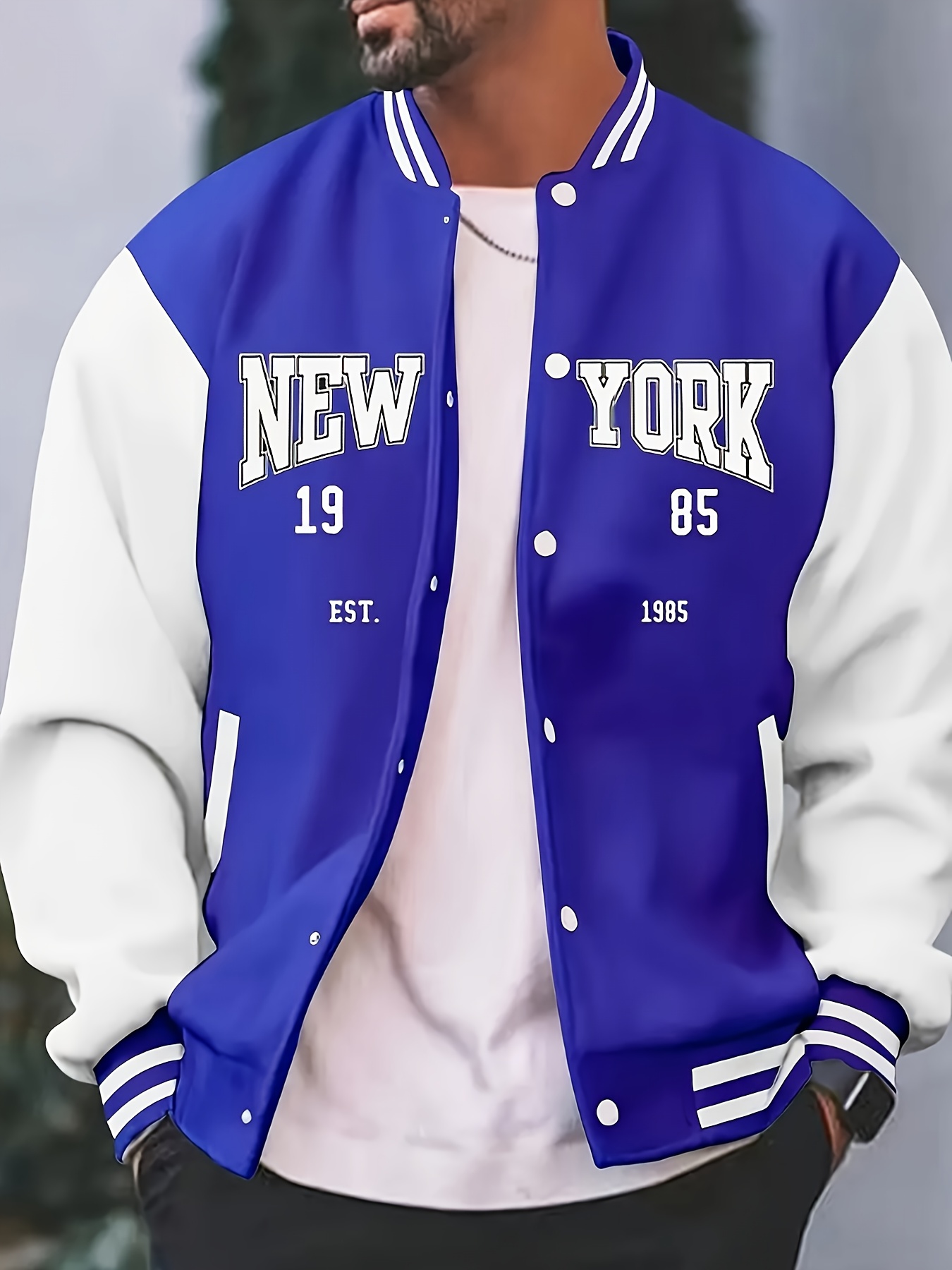 Men's Large Size Vintage New York Lettering & Numbered Baseball Jacket - Two-Tone Button College Style Snapback Coat, Retro Streetwear Outerwear with Pockets (Machine Washable, Spring/Fall Casual Wear) - Christmas Gift for NY Fans, PLUS SIZE