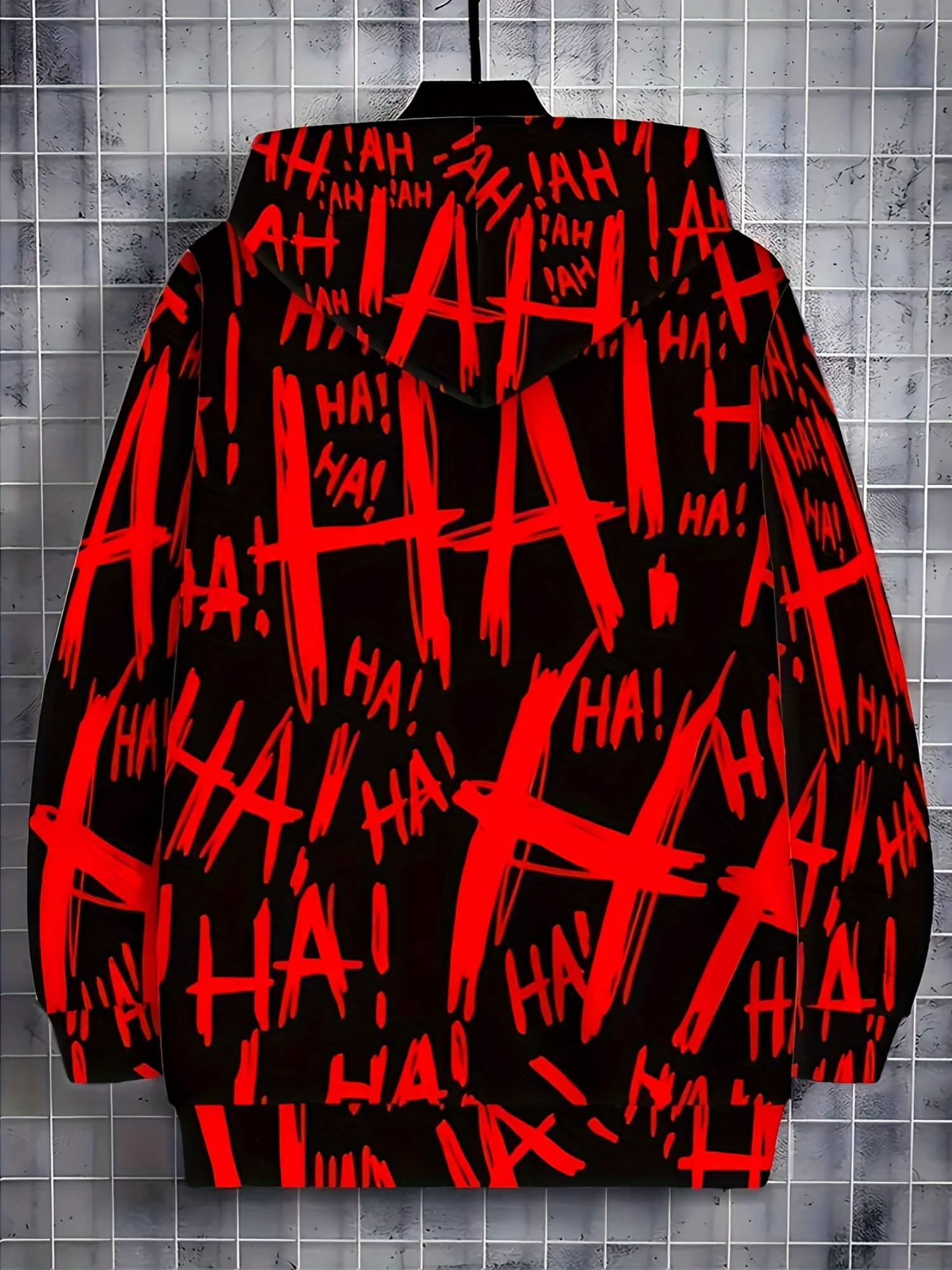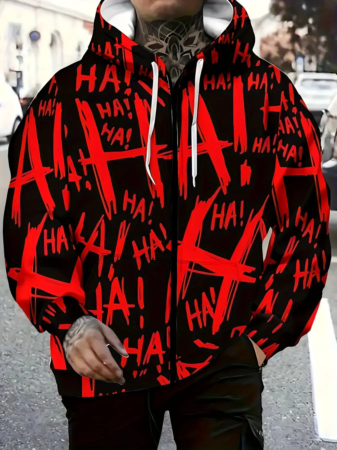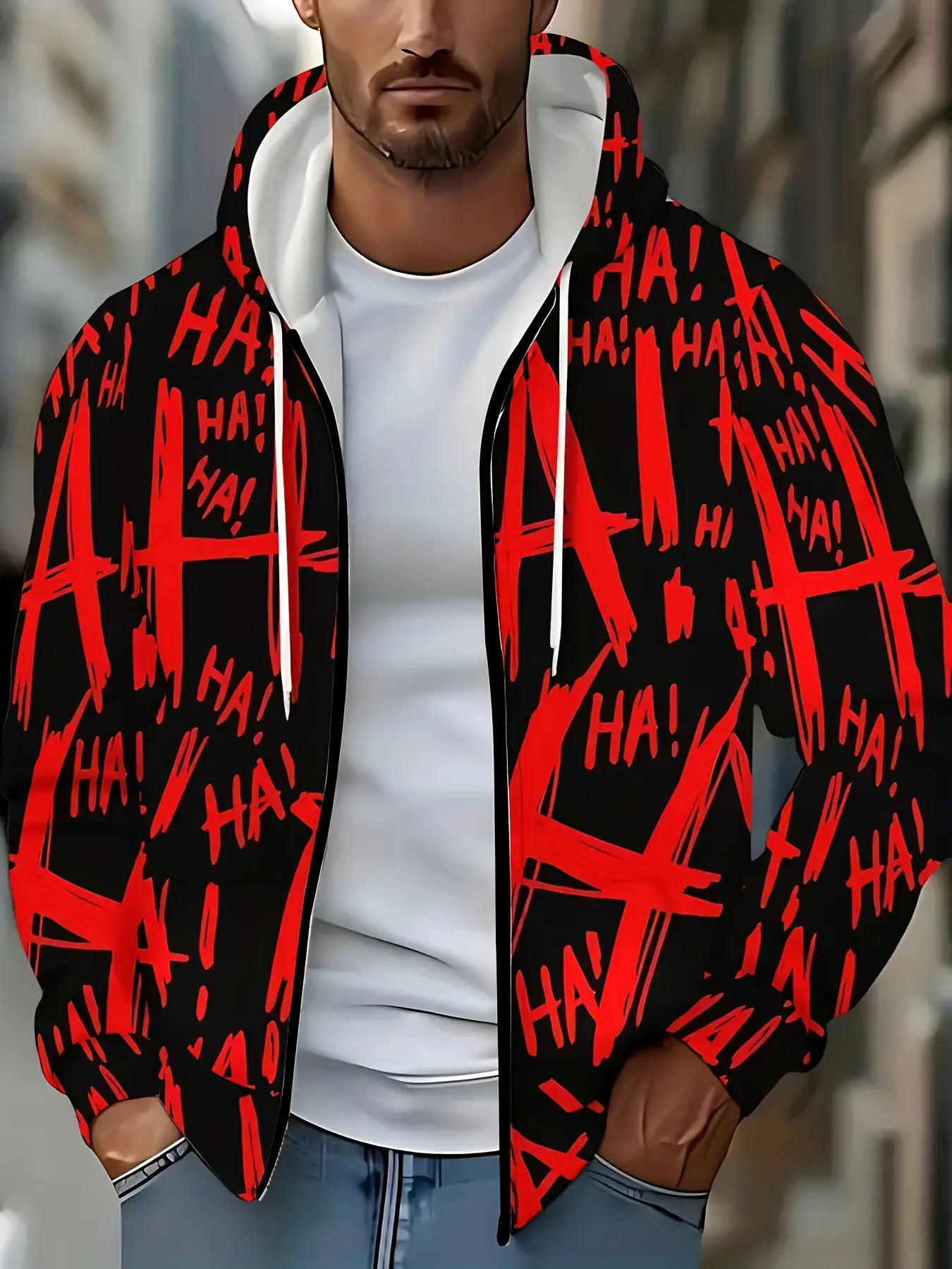 Men's Oversized Streetwear Jacket with Full-Body & Lettering Print - Lightweight Zip-Up Hooded Baseball Coat, Long Sleeve Casual Winter Outerwear for Big & Tall, Urban Fashion Essential, Christmas Gift, PLUS SIZE