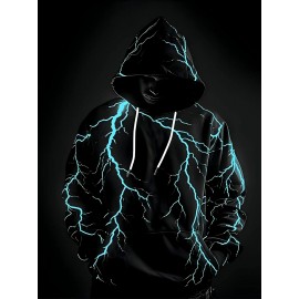 Men's Neon Pink Lightning Bolt Hoodie - Stretch Knit Pullover Sweatshirt with Adjustable Hood, Bold White Lightning Print, Machine Washable Winter Warm Coat for Gym, Streetwear & Casual Outfits - Durable Neon Glow Jacket, PLUS SIZE, Big And Tall Men Clothing, Winter Clothes For Women Plus Size, Oversized Hoodie Men, Winter Hoodies For Men, Botas De Invierno, Plus Size Pants For Men, Long Sleeve Plus Size, Chunky Sweaters, Plus Size Sweat Suit, Thick Hoodies For Women,