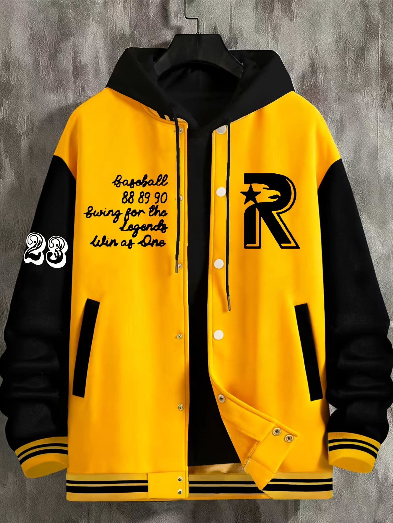 Men's Large Size Baseball Jacket with Letter 'M' Print (for Miami/other letters) - Buttonless Snap Closure, Machine-Washable Polyester Coat, Pockets - Casual Winter Outerwear for Big & Tall, Christmas Gift (No hat Included), PLUS SIZE