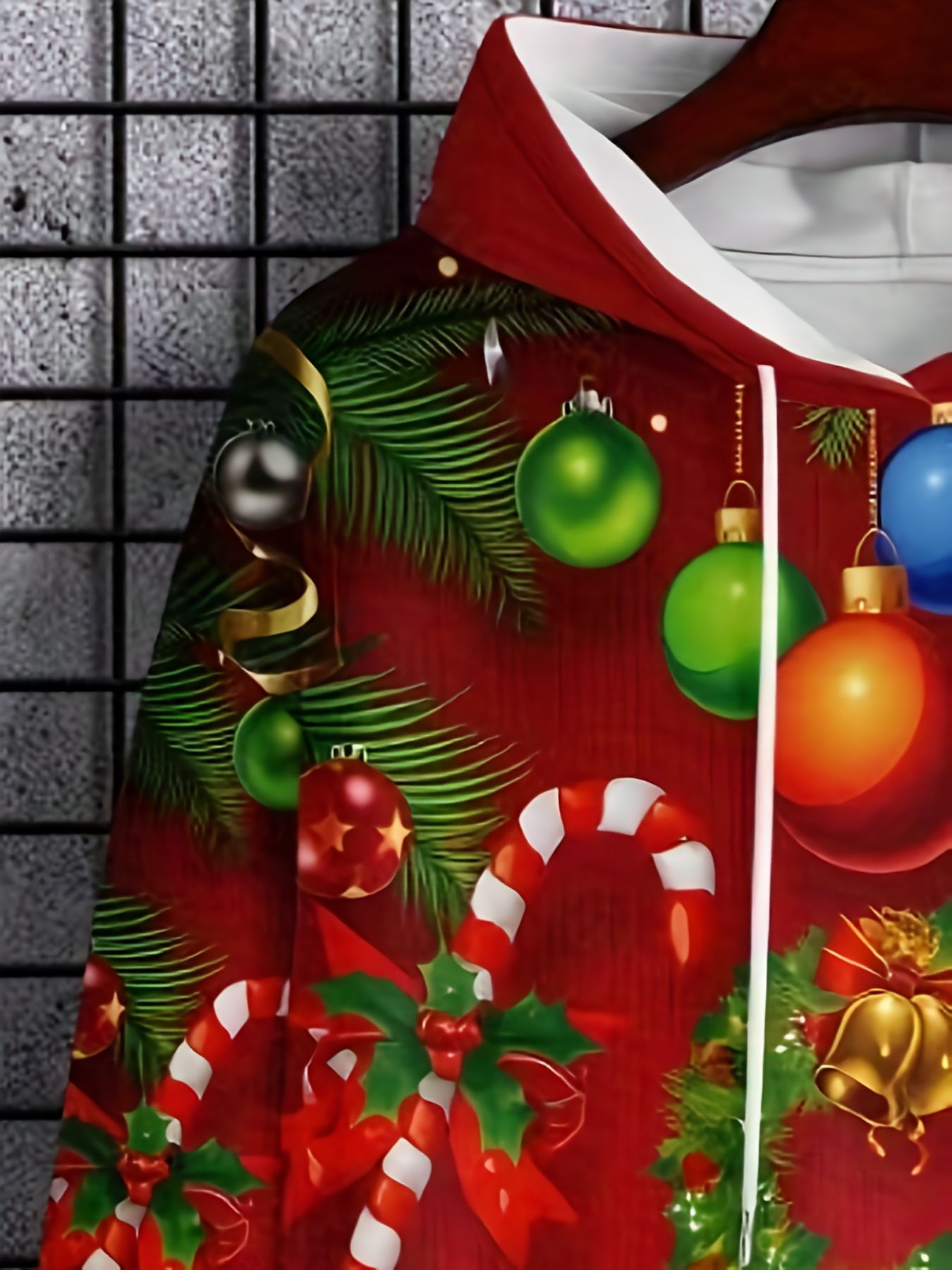 Mens Plus Size Relaxed Hooded 3D Print Sweatshirt | Santa Reindeer Snow Design, Trendy Street Fashion, Bright Colors, Perfect for Autumn Winter