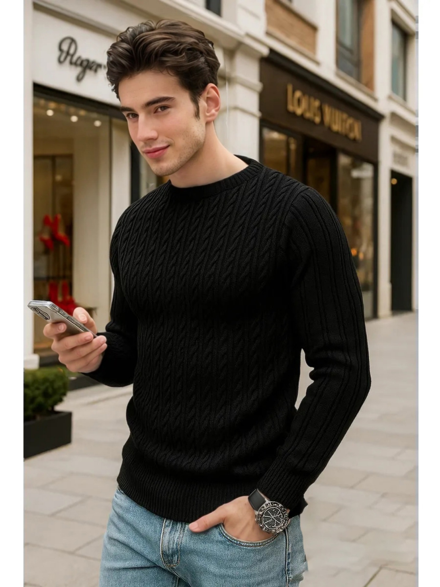 Plus Size Men's Sweater Winter Warm Cable Knit Pullover - Solid Color Round Neck Loose Fit Sweaters for Big & Tall, Casual Winter Wear, Machine Washable Cozy Sweaters for Cold Weather (European/American Styles), PLUS SIZE