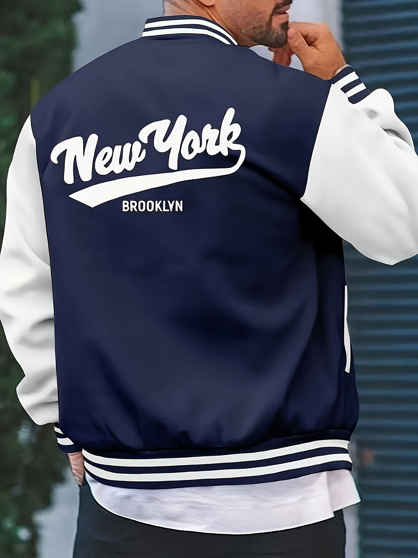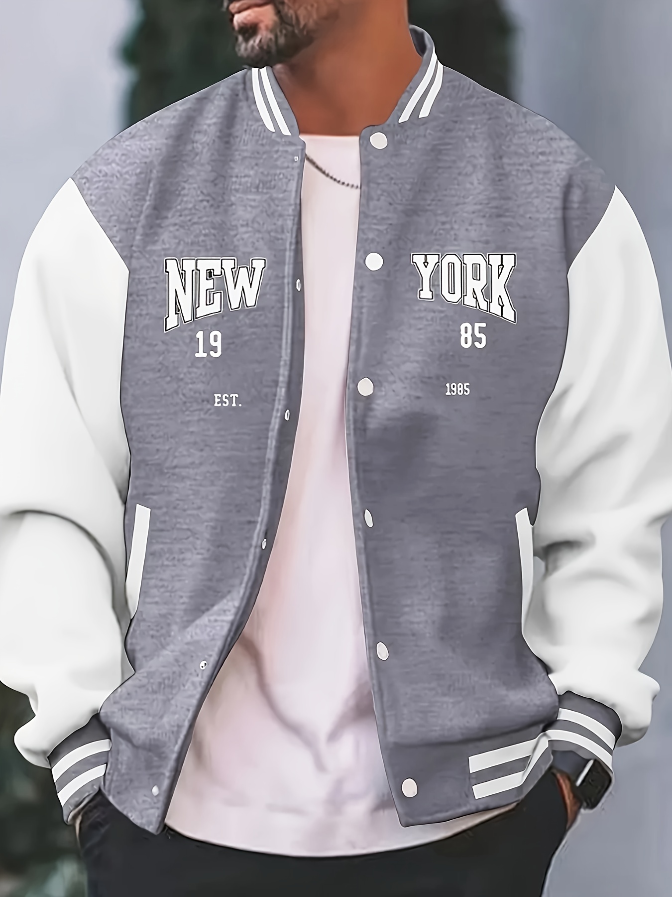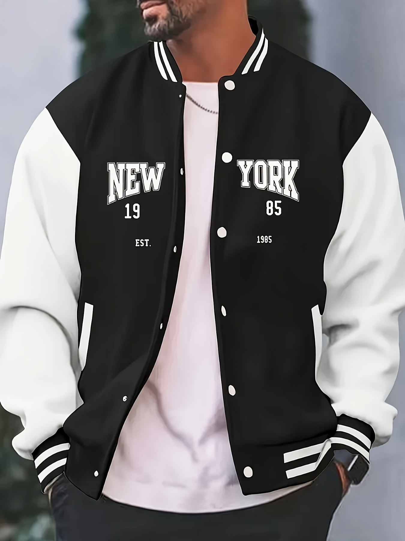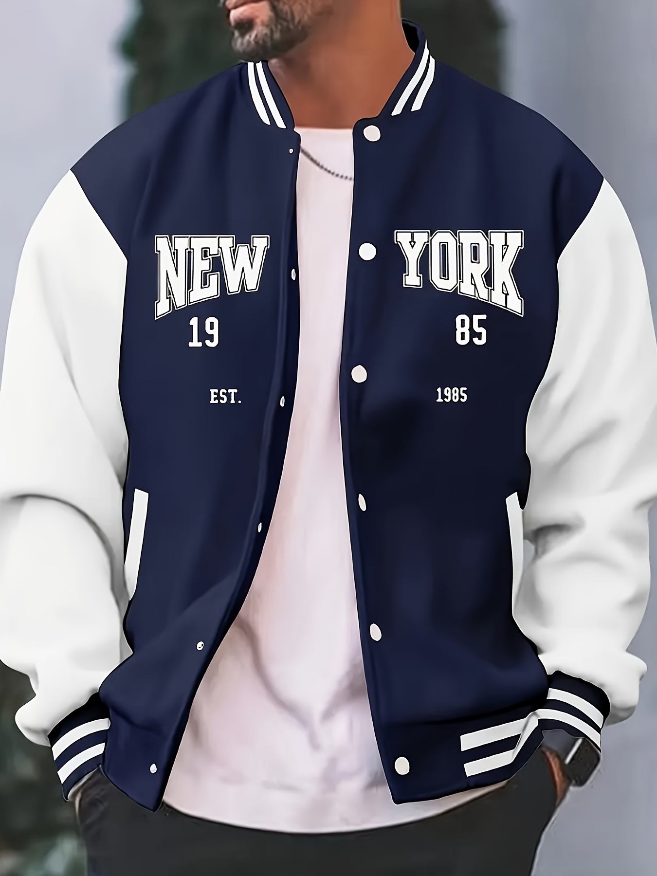 Men's Large Size Vintage New York Lettering & Numbered Baseball Jacket - Two-Tone Button College Style Snapback Coat, Retro Streetwear Outerwear with Pockets (Machine Washable, Spring/Fall Casual Wear) - Christmas Gift for NY Fans, PLUS SIZE