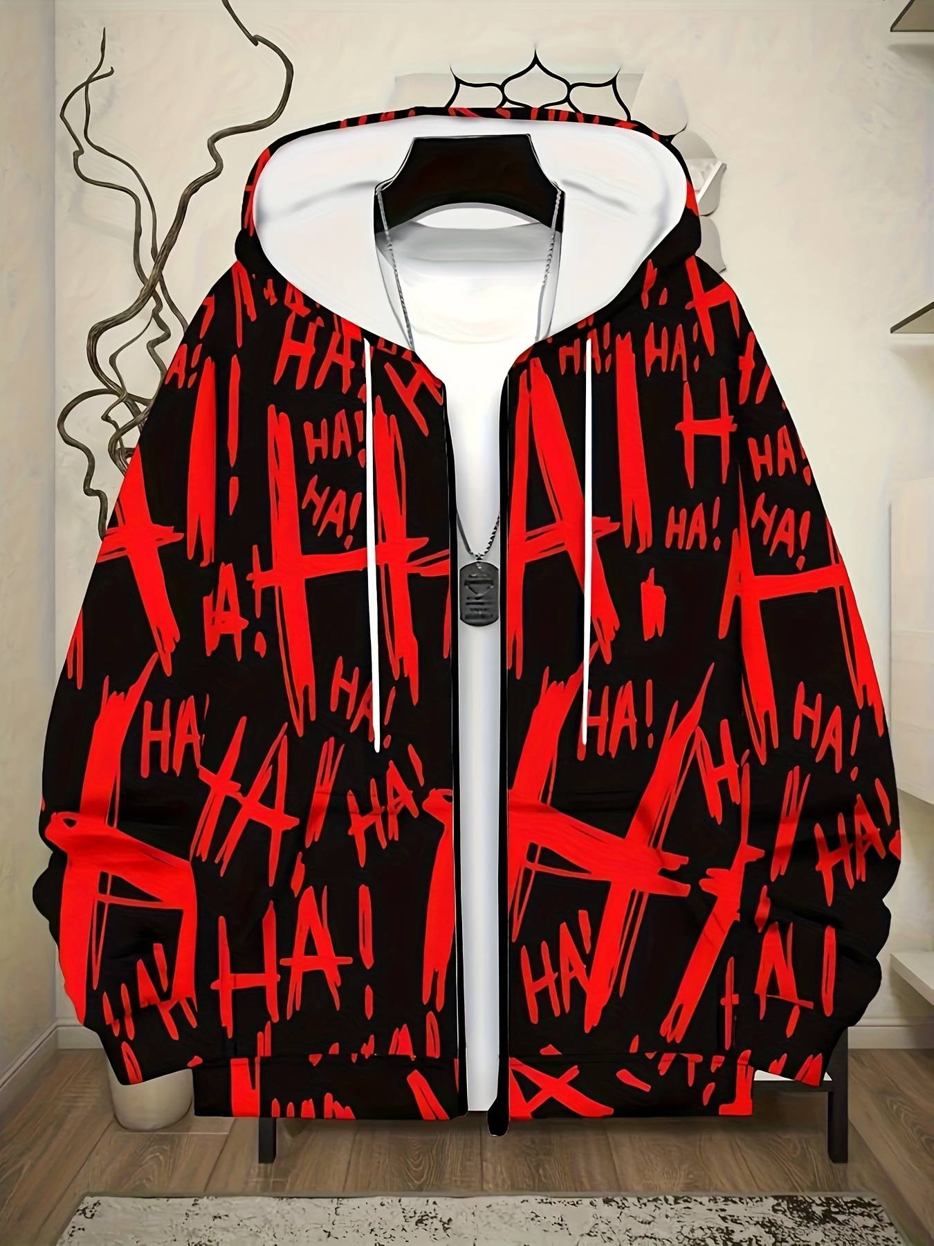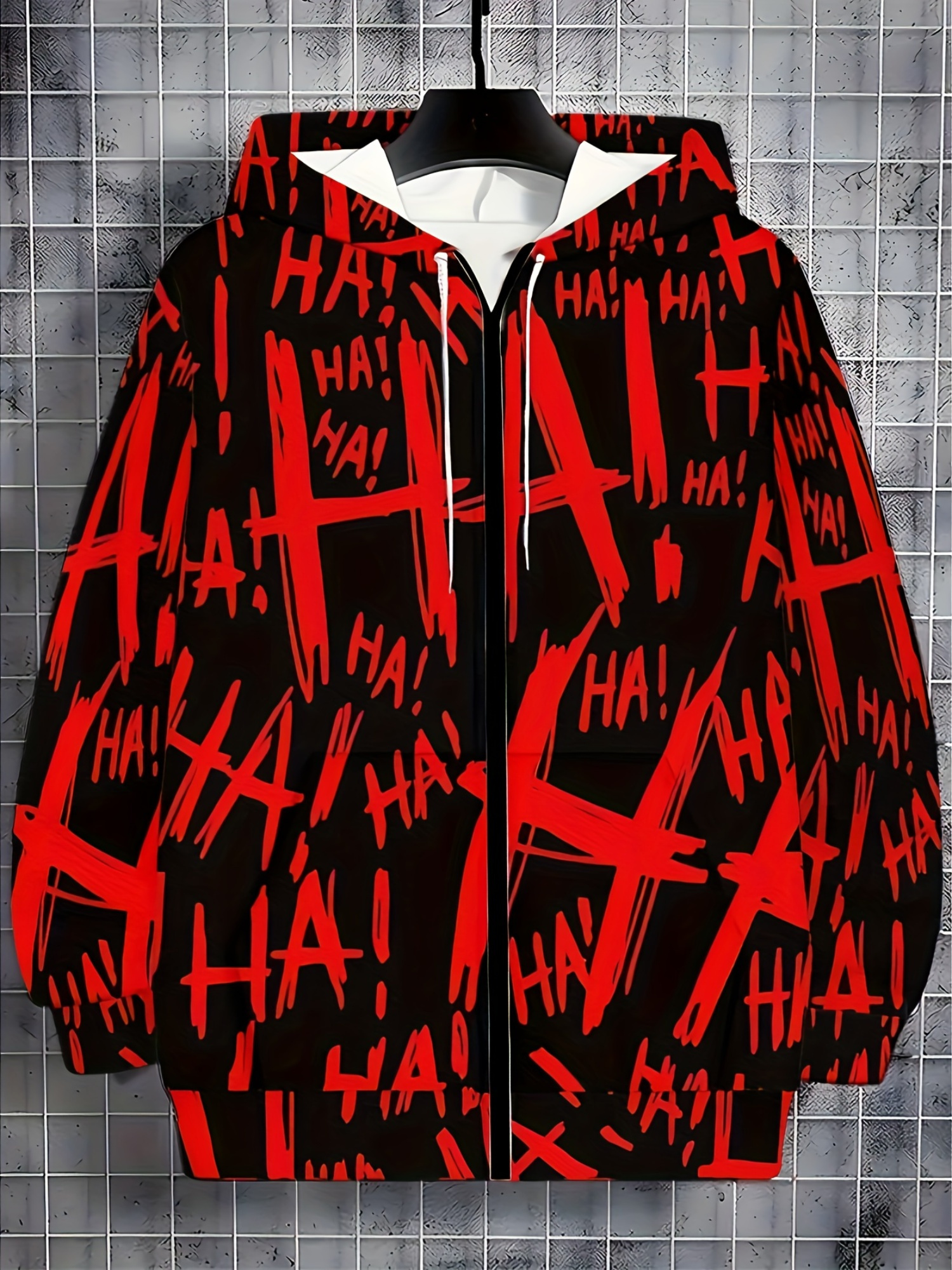 Men's Oversized Streetwear Jacket with Full-Body & Lettering Print - Lightweight Zip-Up Hooded Baseball Coat, Long Sleeve Casual Winter Outerwear for Big & Tall, Urban Fashion Essential, Christmas Gift, PLUS SIZE