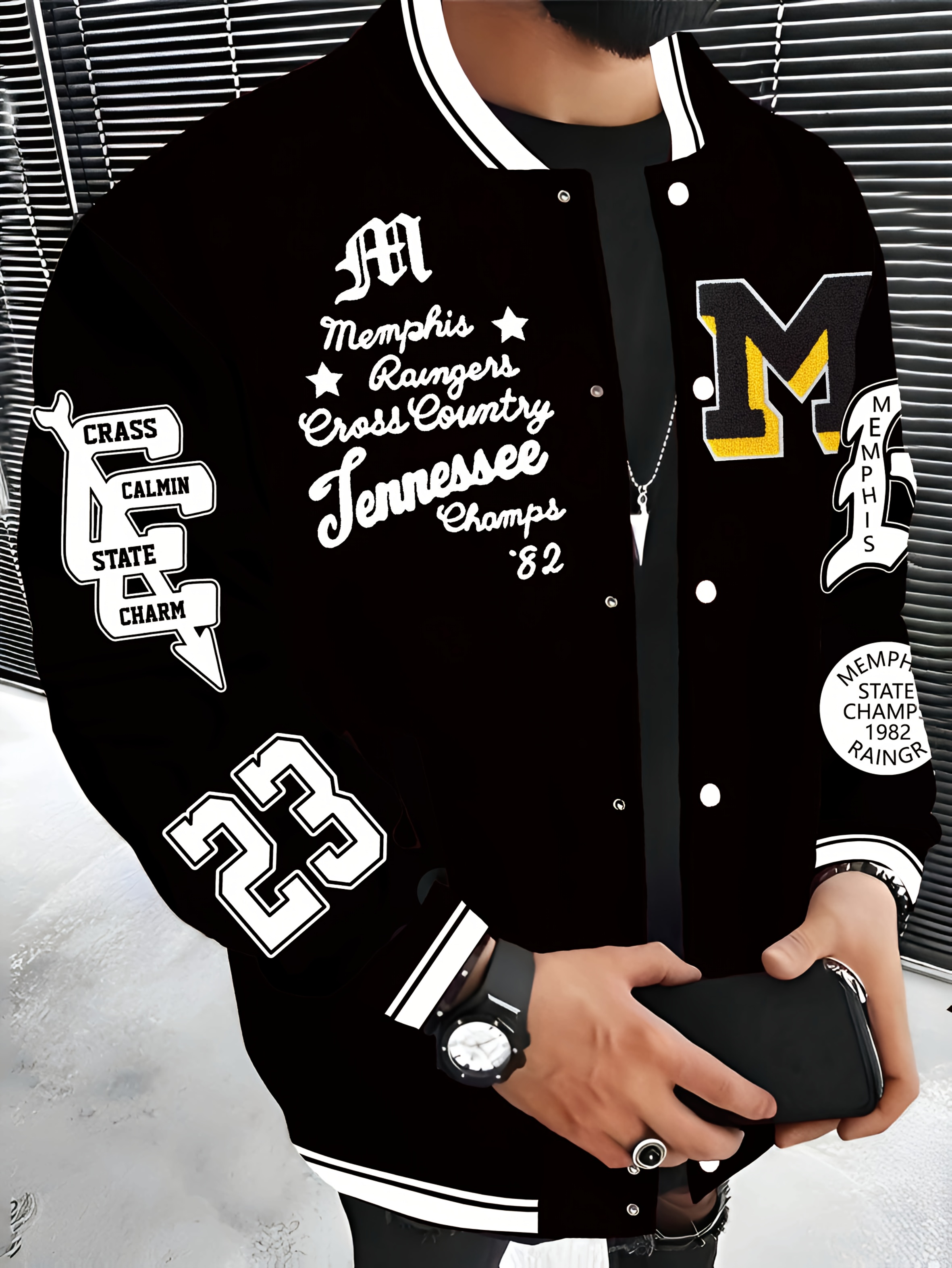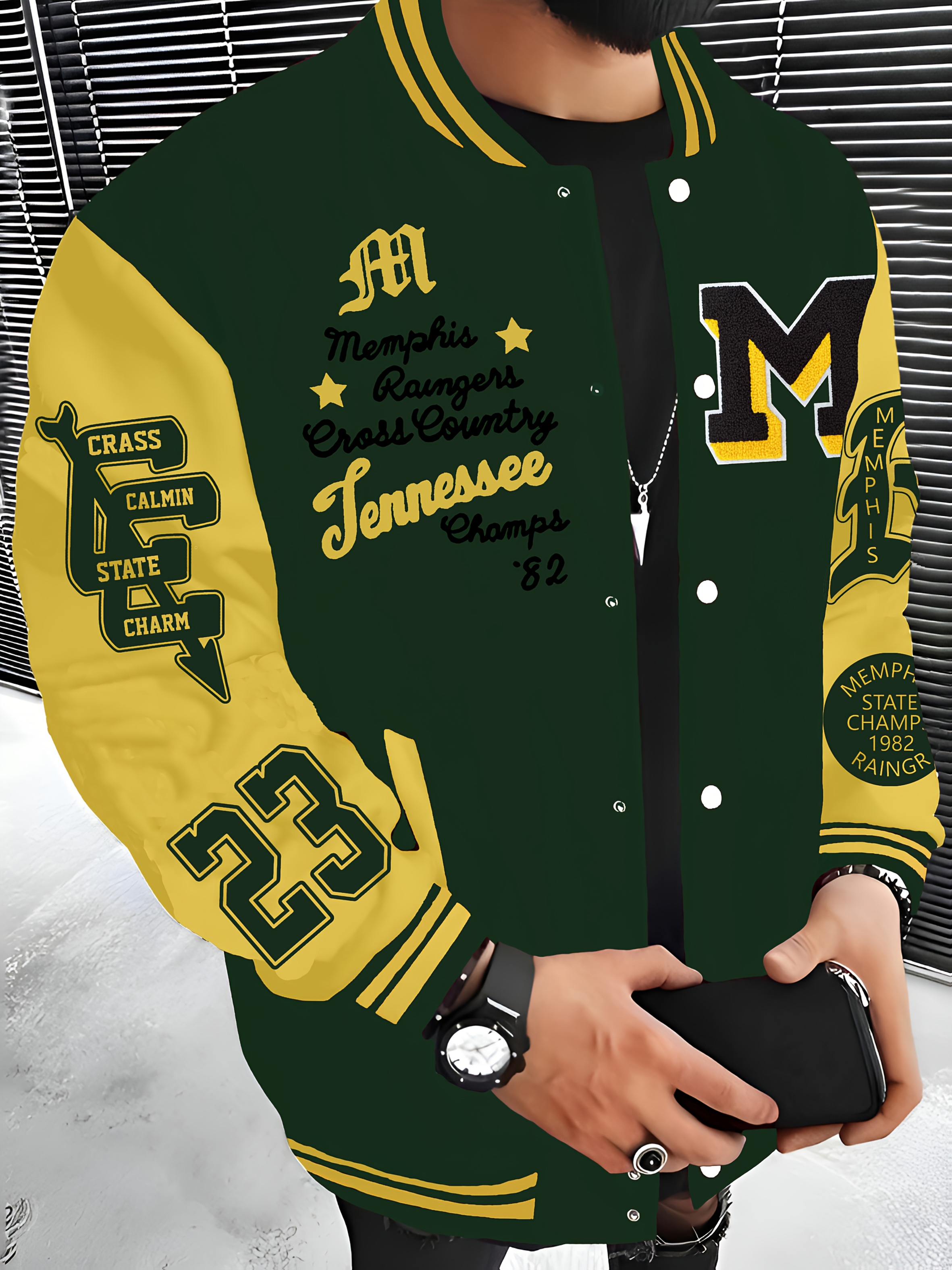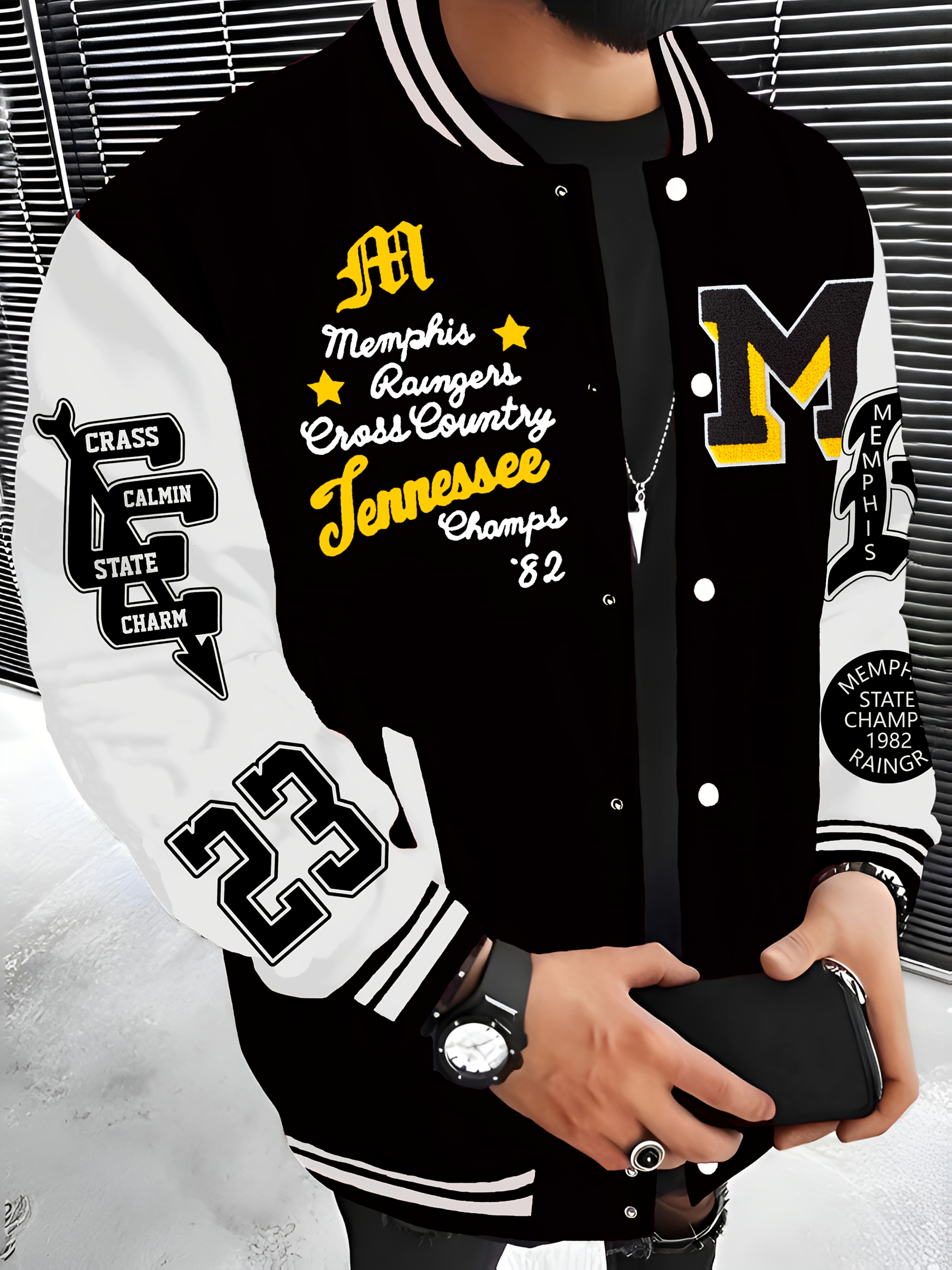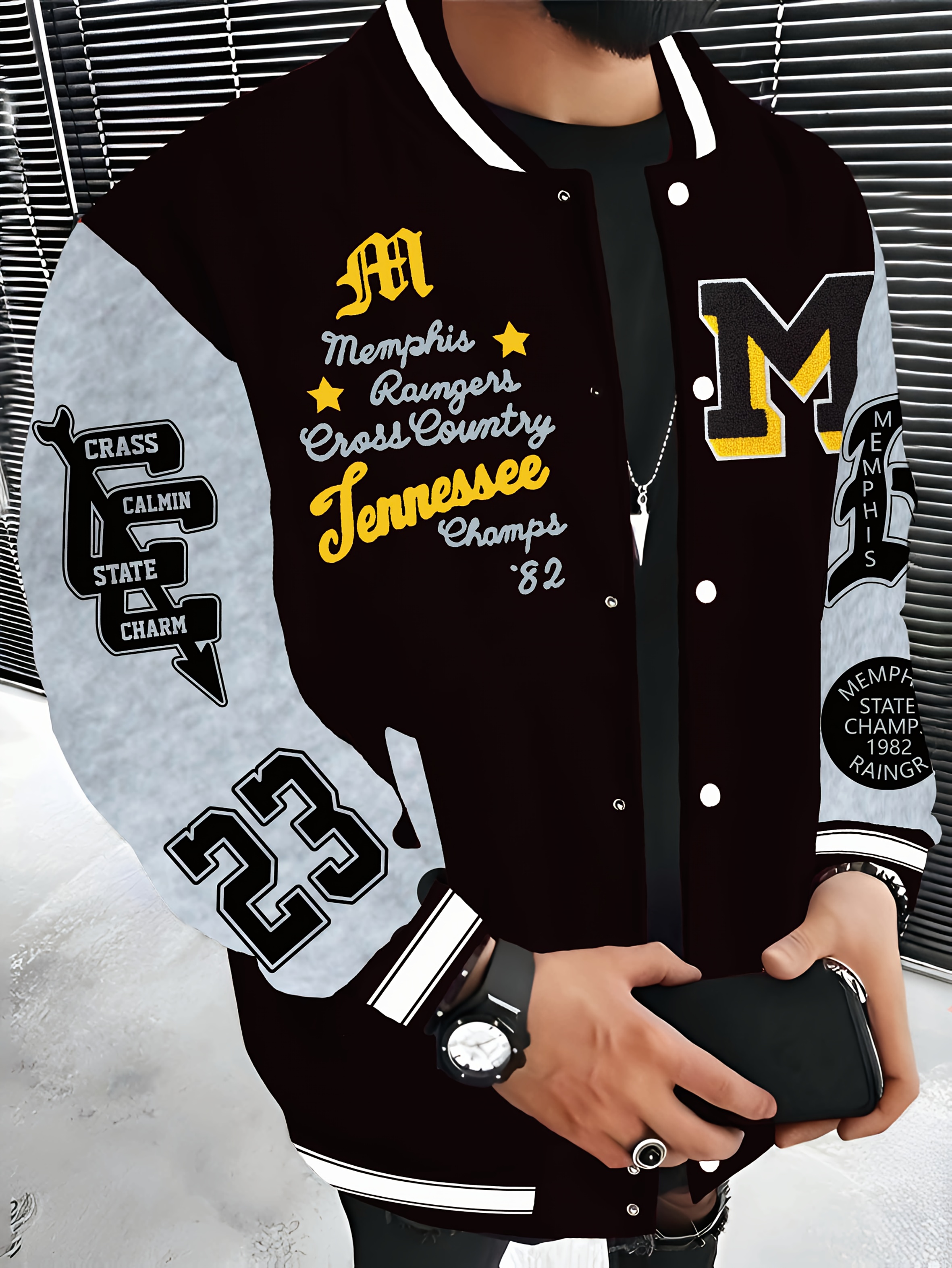 Men'S Plus Size Baseball Jacket | Los Angeles Style, Letter and Number 23 Print, Wrinkle Resistant, Casual Sports, Perfect for Parties, Autumn and Winter