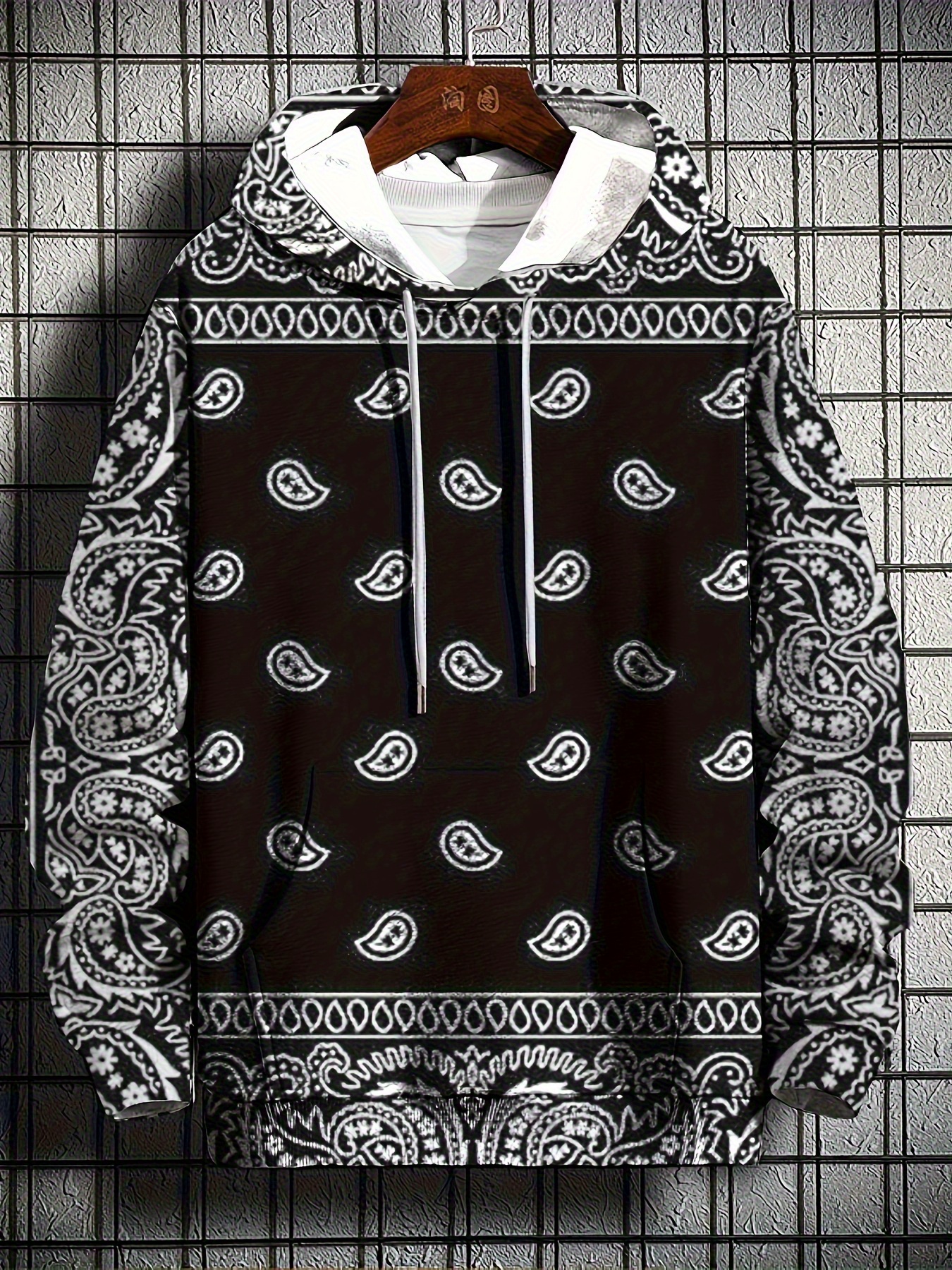 Men's Plus Size Hoodie - Soft Stretch Fabric Pullover Sweatshirt with Drawstring Hood & Front Pocket, Black with White-eye design - Regular Fit Long Sleeve Urban streetwear for Big & Tall Men - Machine Washable Everyday & Party Outfits, PLUS SIZE