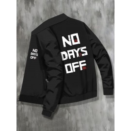 Plus Size NO DAYS OFF College Style Comfy Stand Collar Jacket - Slightly Stretch Stylish Zip Up For Autumn & Winter