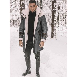 Men's Vintage Motorcycle Windproof Winter Jacket with Large Faux-Fur Collar & - Thickened Warm Coat, Button Closure, Loose Fit Motorcycle/overcoat (Multi-Color Options) - Machine Washable for autumn & winter Riding/Business use, PLUS SIZE