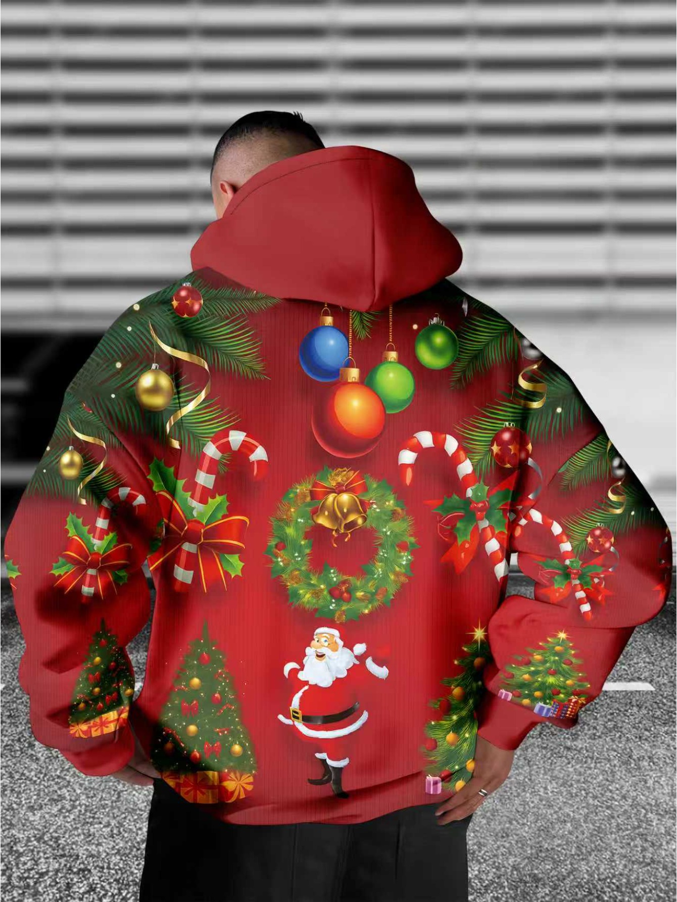 Mens Plus Size Relaxed Hooded 3D Print Sweatshirt | Santa Reindeer Snow Design, Trendy Street Fashion, Bright Colors, Perfect for Autumn Winter