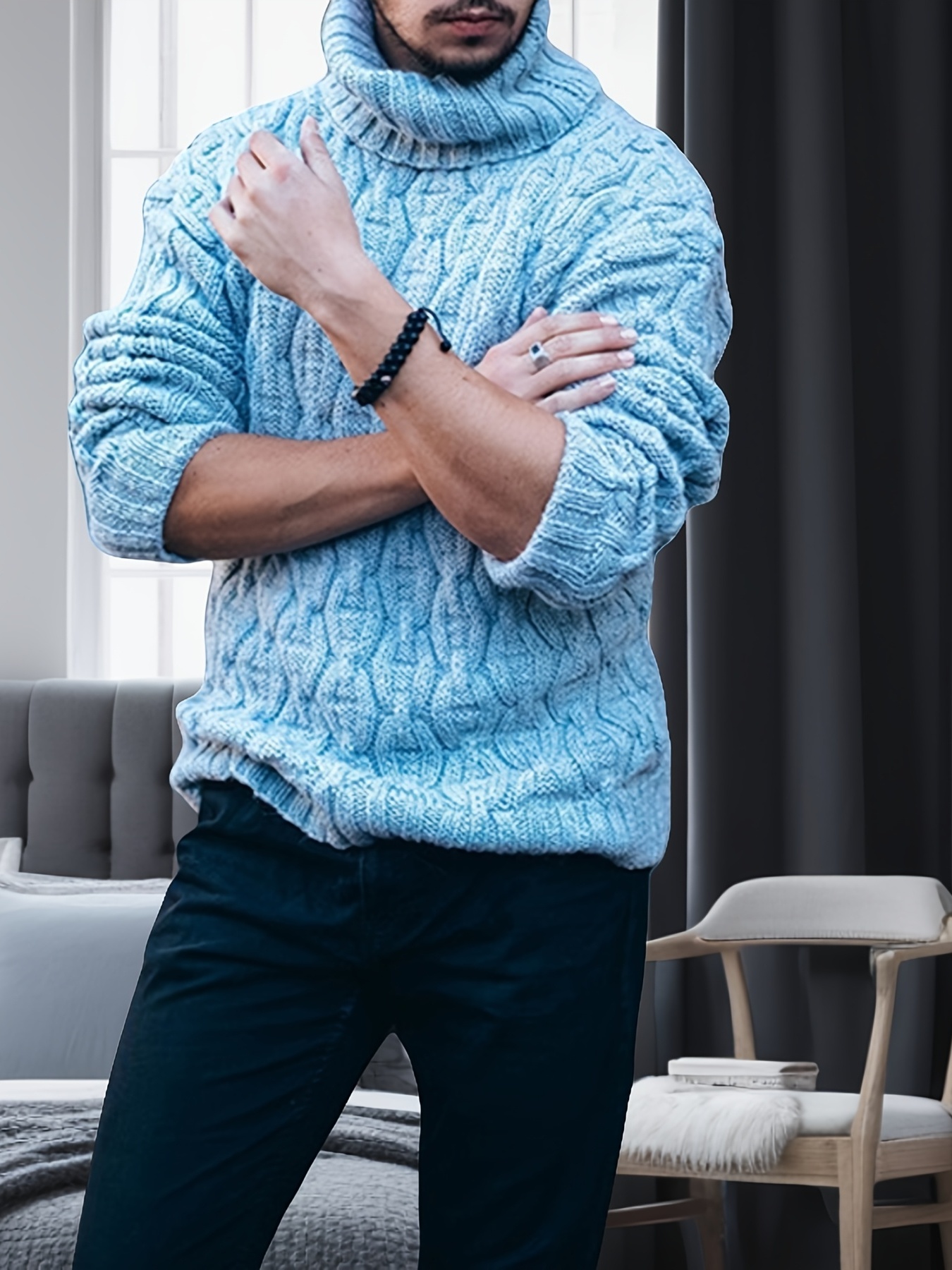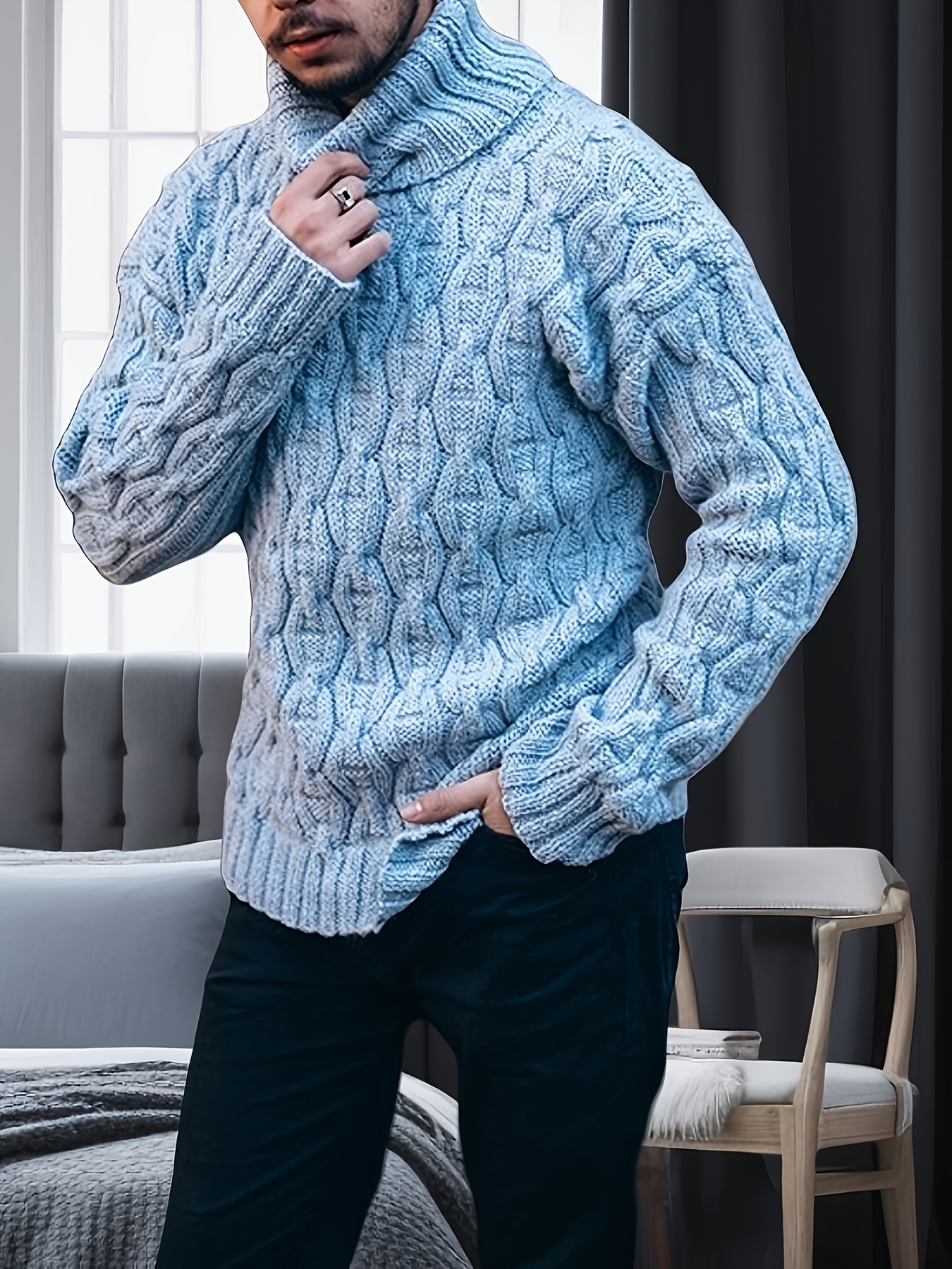 Men's Plus Size Winter Warm Sweater - Oversized Loose Fit High Collar Pullover, Solid Color Casual Winterwear Suitable for Cold Weather, Hand Washable Thick Sweaters, PLUS SIZE