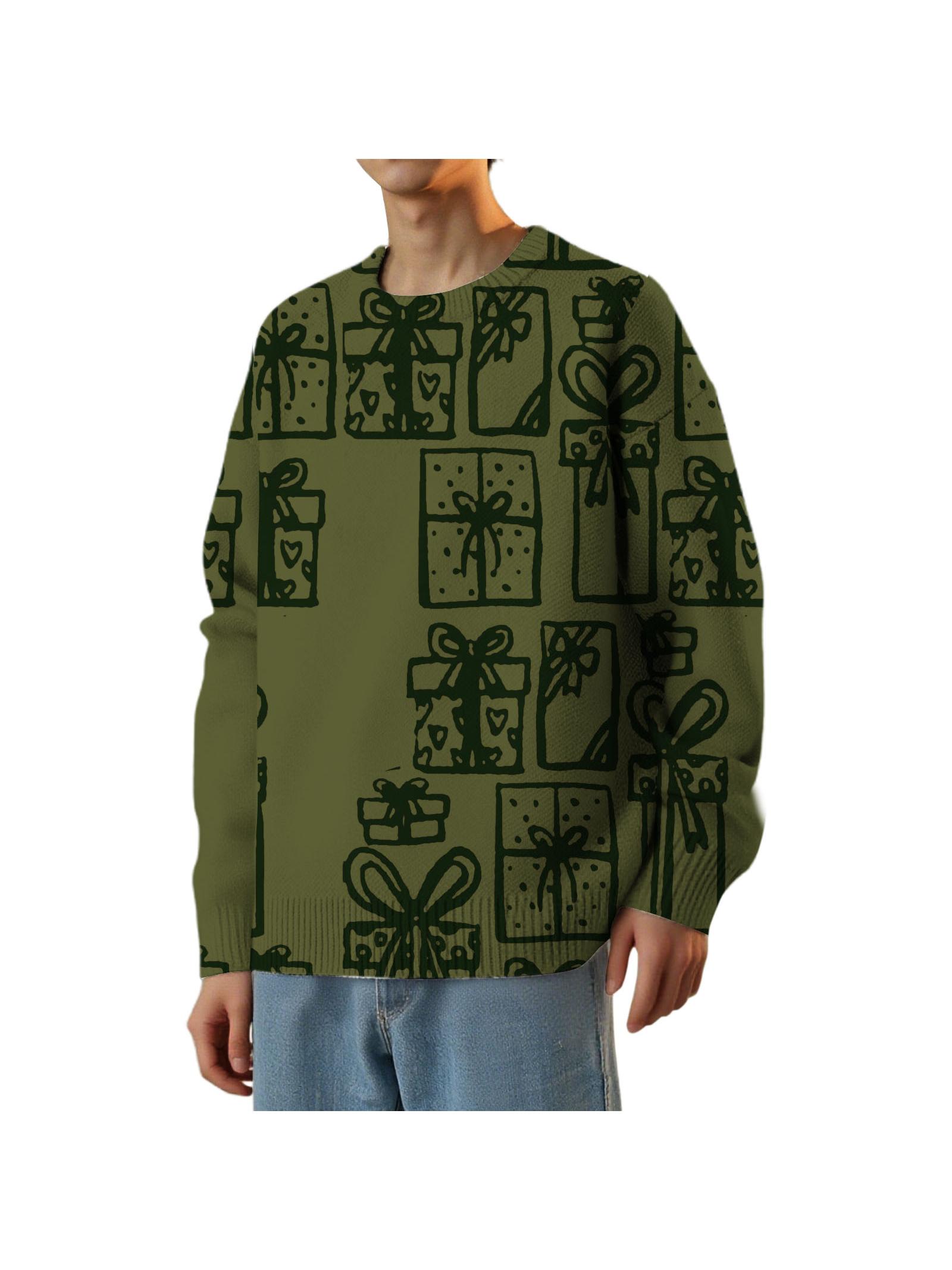 Men'S Winter Coat & T-Shirt - Long Sleeve Round Neck Thermal Base Layer, Olive Green with All-Over Print, Regular Fit Casual & Formal Wear, Warm Layering Top for Cold Weather, Versatile Everyday & Formal Outfits, Durable & Comfortable Men'S Fashion