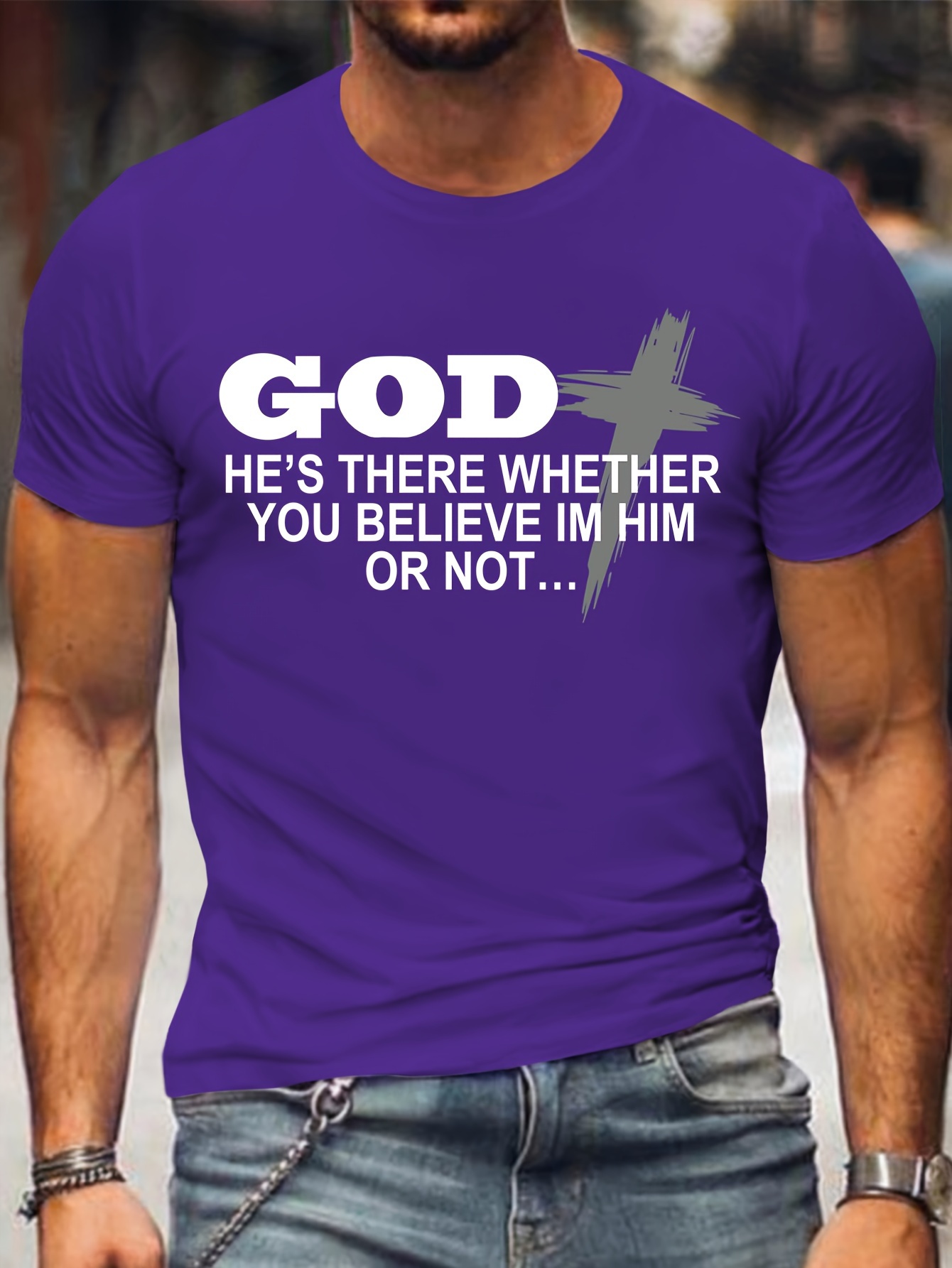 [Plus Size Crew Neck Tee] Men's Plus Size Crew Neck T-Shirts | Casual Polyester Knit Fabric with Slogan Print | Medium Stretch | Regular Fit | All-Season Adult Tops with Alphabet Pattern