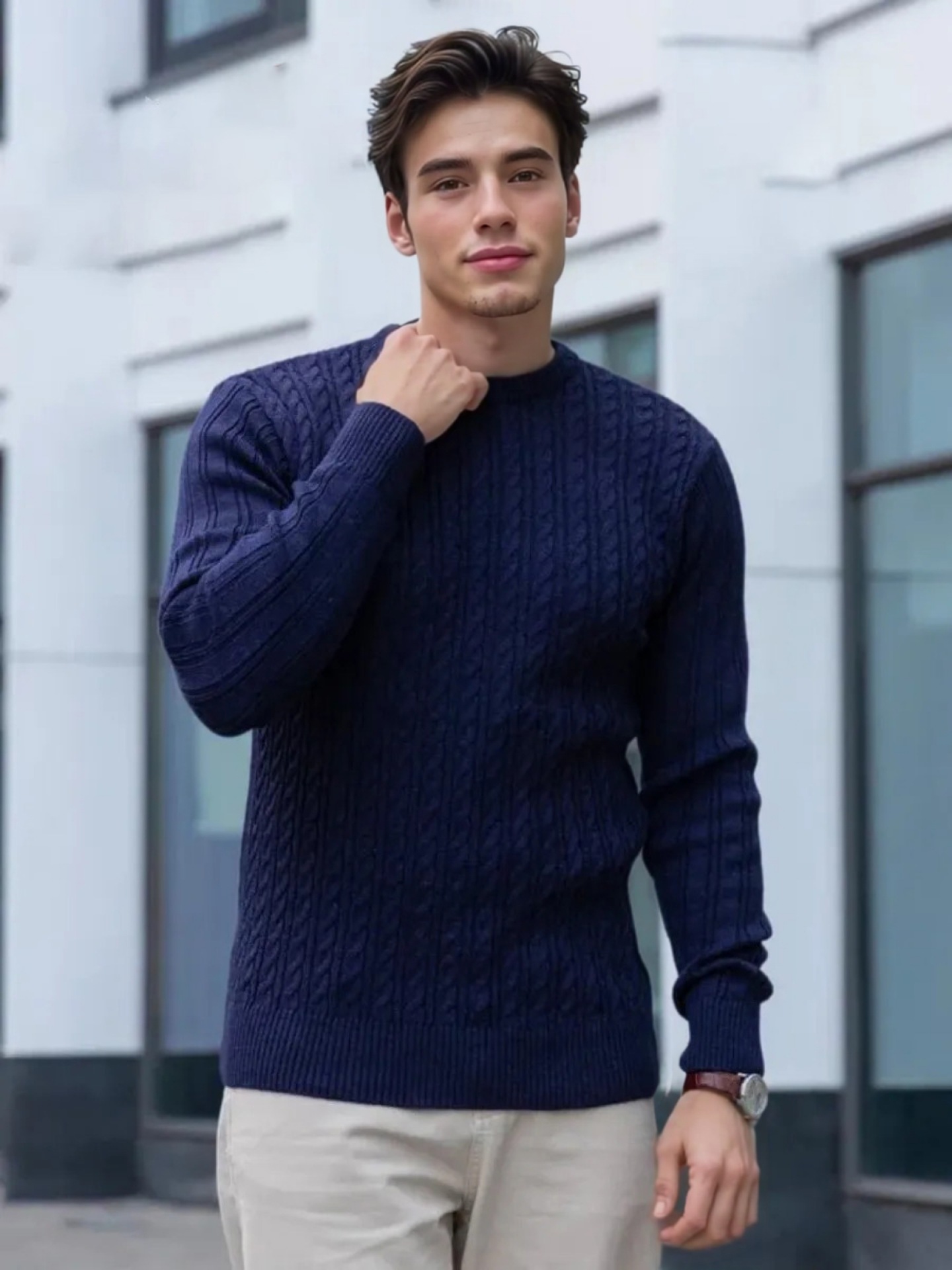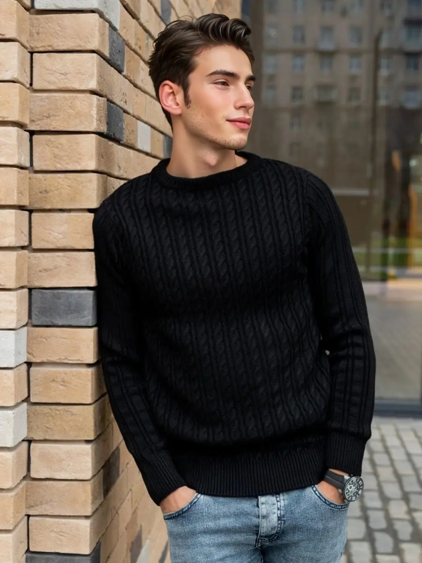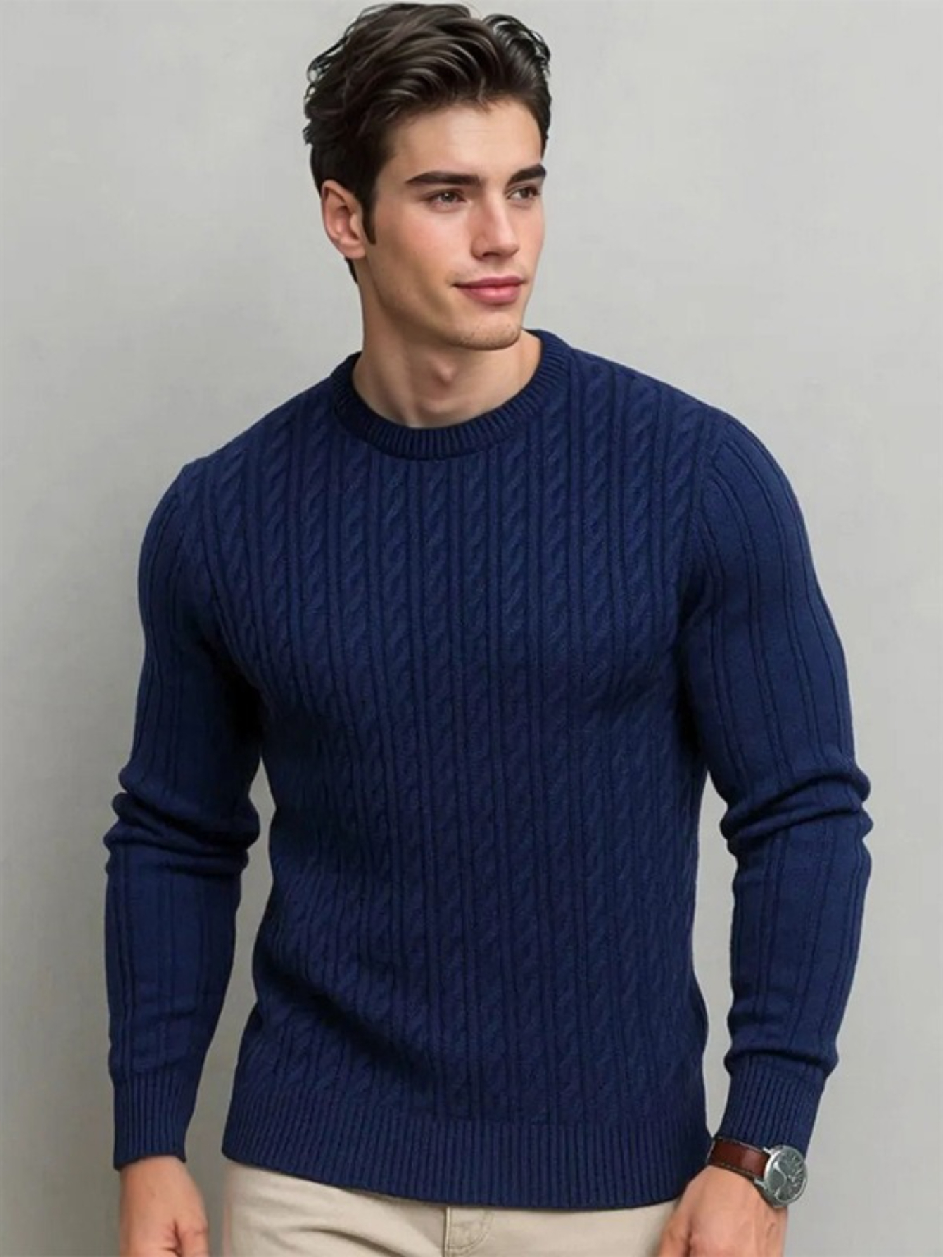 Plus Size Men's Sweater Winter Warm Cable Knit Pullover - Solid Color Round Neck Loose Fit Sweaters for Big & Tall, Casual Winter Wear, Machine Washable Cozy Sweaters for Cold Weather (European/American Styles), PLUS SIZE