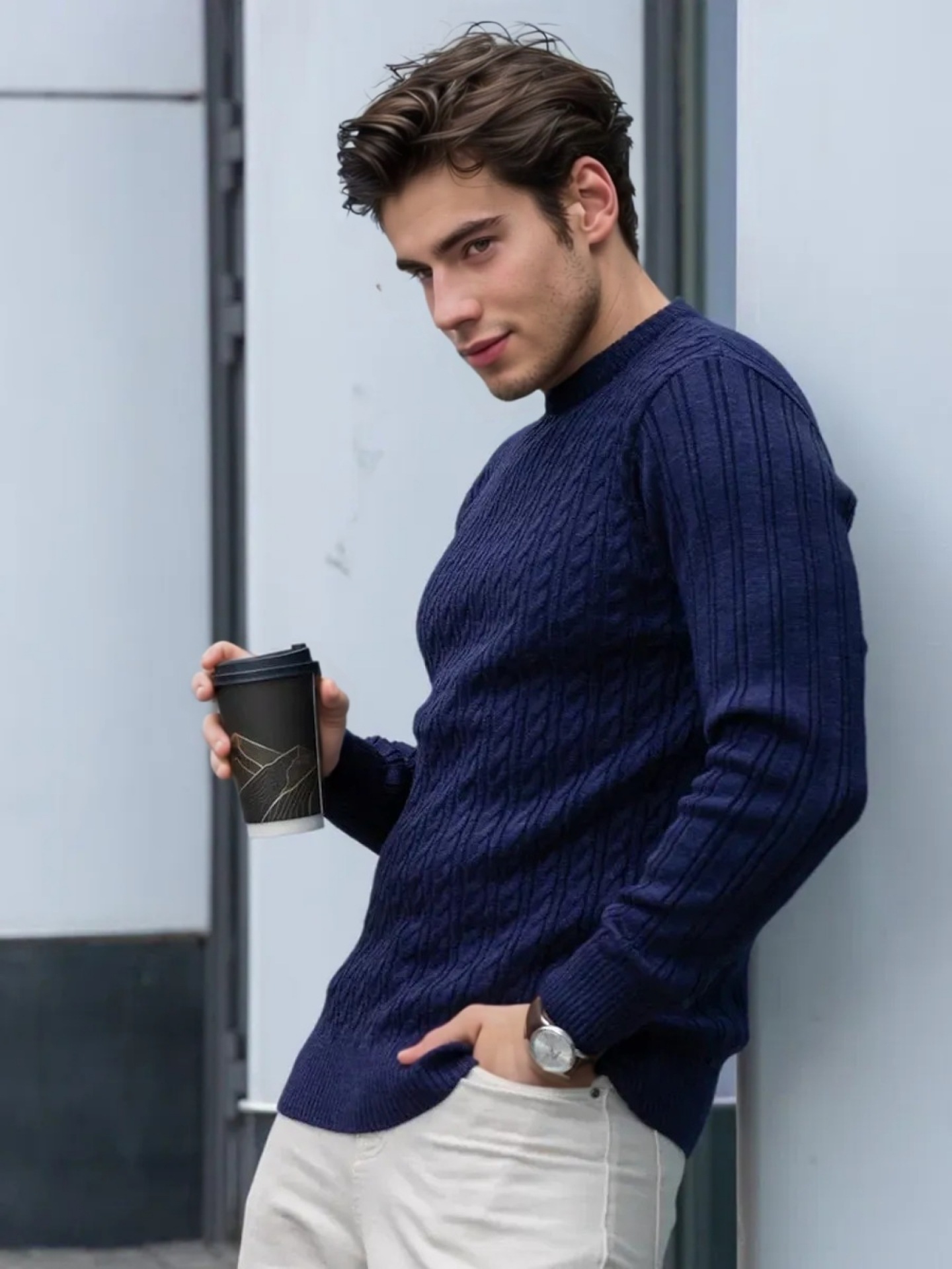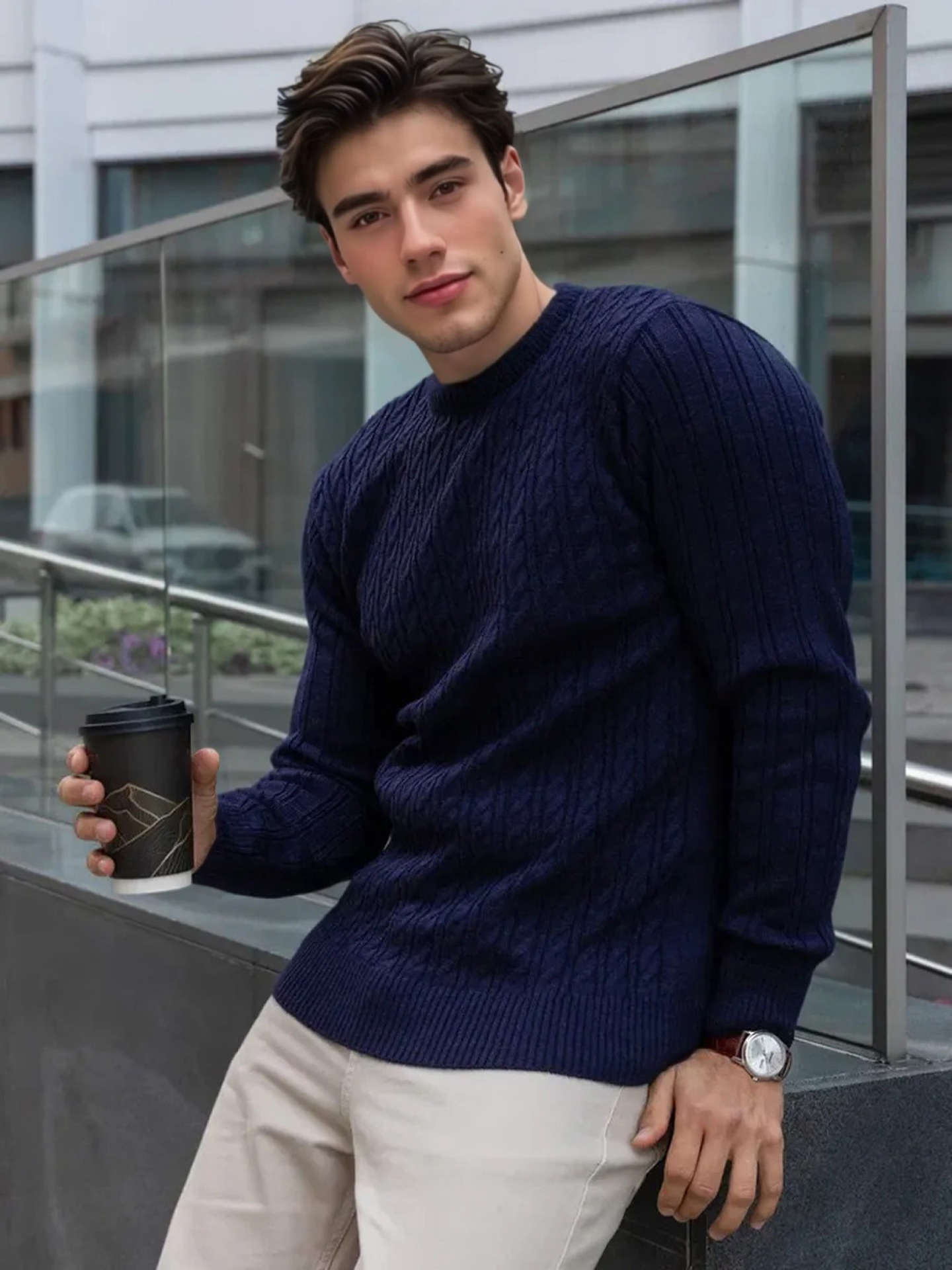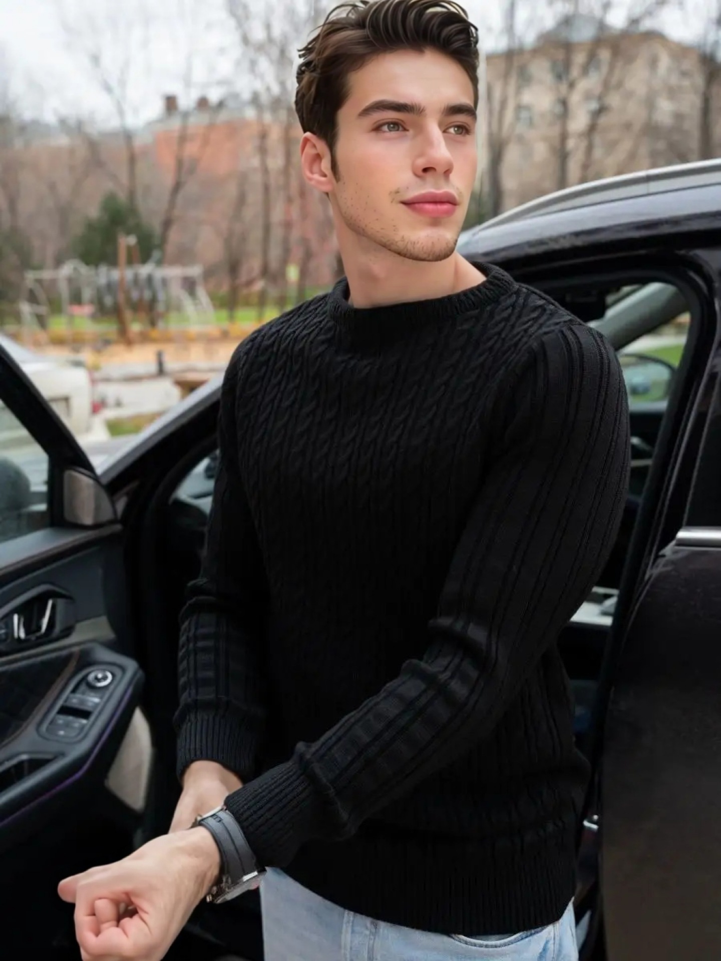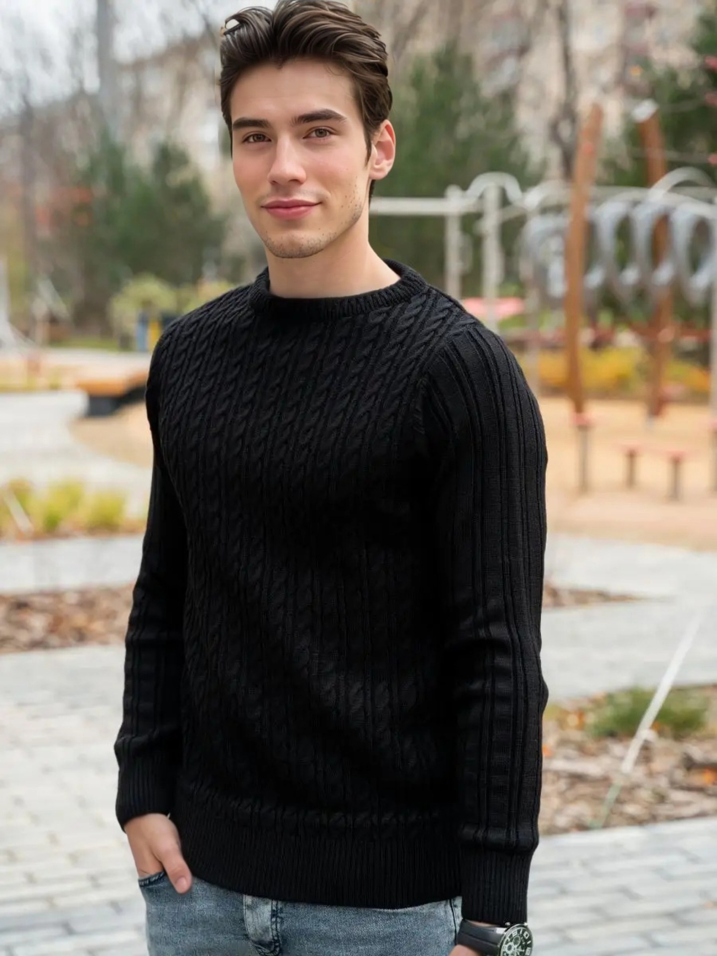 Plus Size Men's Sweater Winter Warm Cable Knit Pullover - Solid Color Round Neck Loose Fit Sweaters for Big & Tall, Casual Winter Wear, Machine Washable Cozy Sweaters for Cold Weather (European/American Styles), PLUS SIZE